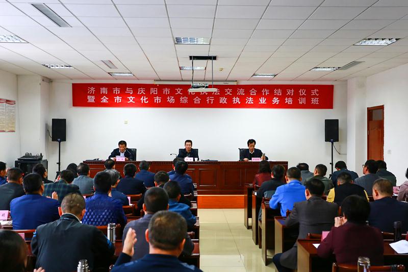 为深入贯彻落实文化部《关于开展2017—2020年中西部地区文化市场综合执法能力提升行动计划》,确保完成省文化厅“东西牵手、整体提升”目标要求,济南市文化市场综合行政执法局与甘肃省庆阳市文化市场综合执法支队结为对口协作结对单位。10月10日,bet-365体育投注在线在章丘区委党校举行两市文化执法对口交流合作结对仪式。 此次结对合作为期4年。两市文化执法机构将以提高文化市场综合执法人员综合素质和执法能力为重点,立足两市文化产业发展实际,直面执法改革难点、热点问题,采取集中培训、驻场学习、以案施训、案卷评查等多种双向交流形式,采取有力措施,努力做到重一线、重实践、重实效,全面促进两市文化市场综合执法专业化、规范化、信息化水平。 结对仪式后,两市文化执法骨干人员70余人参加了由bet-365体育投注在线举办的文化执法骨干业务培训。培训内容包括扫黄打非及版权工作、广播影视前沿科目执法、互联网文化经营执法、文化执法文书规范制作及执法电子平台应用等方面,侧重执法实际操作能力的培养和训练。此次培训还特别邀请山东辰静律师事务所主任陈静律师就行政诉讼方面的应对技巧和程序方法进行了讲授。 自12日开始,来济交流的20余位庆阳市文化执法骨干将以区县为单位赴济南市各对口区县进行文化执法调研,直观感受济南文化市场发展现状、现场观摩执法检查,并就区县文化市场监管工作相关问题进行座谈交流。